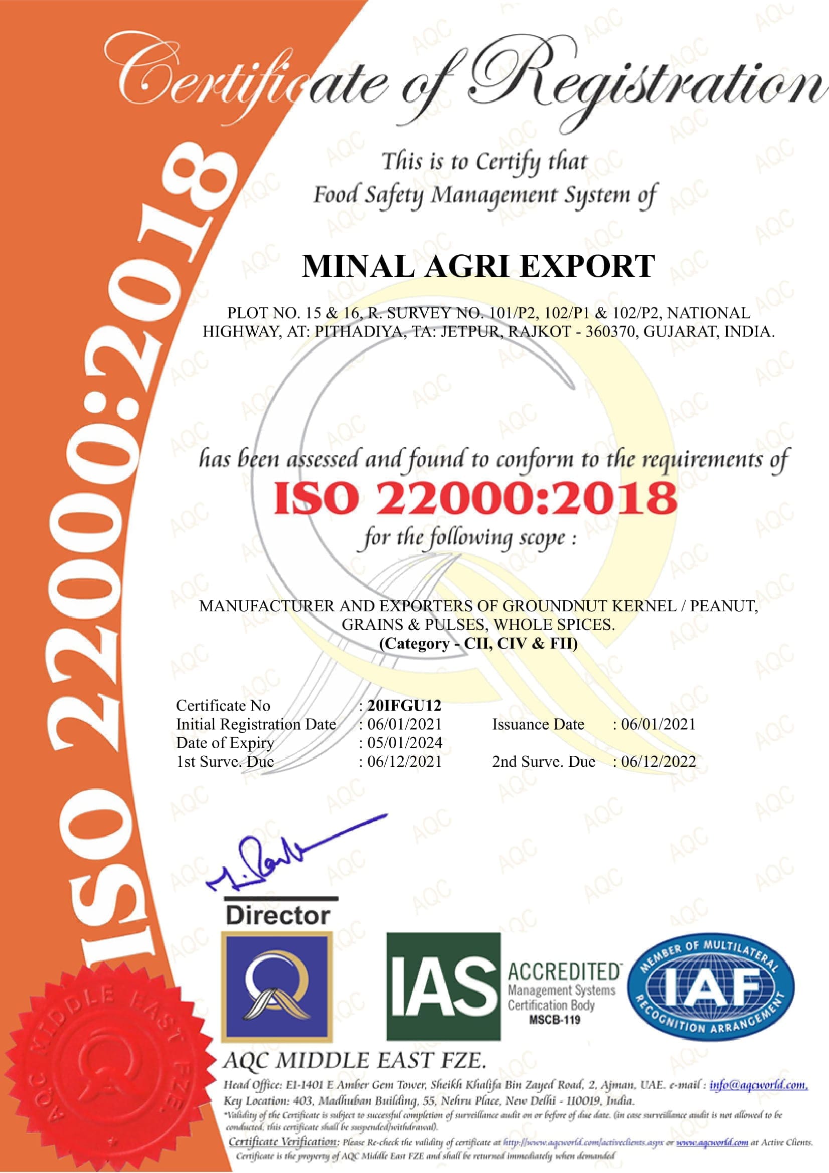 We have our own modern automated processing plant, its capacity is of 100 M.T./Day. We take pride in our state-of-the-art ISO 22000-2018 (Food Safety Management System) certified processing plant where all of our products are cleaned, shelled, sorted & graded without ever being exposed to any kind of human touch.